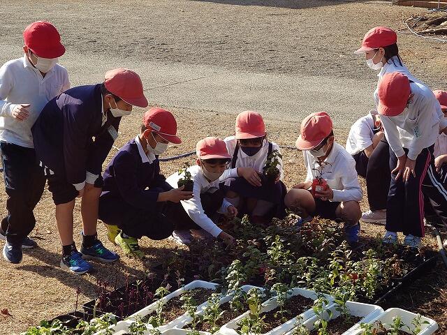 1月11日、3年生が花壇に花苗の定植をしました。定植したのは、学校で育てたキンギョソウです。
