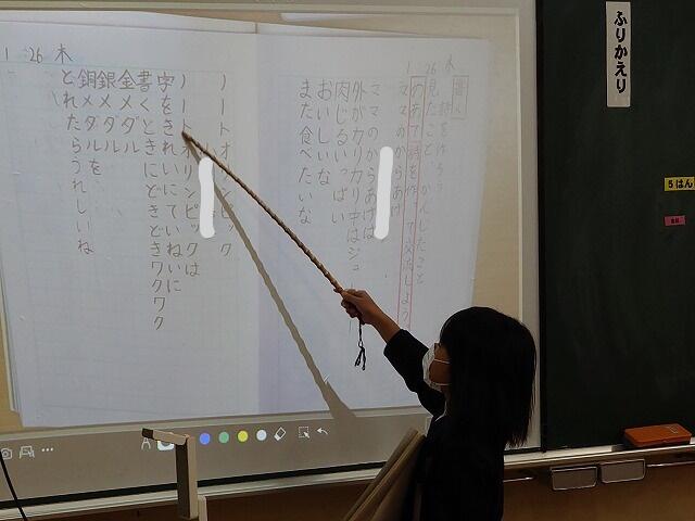 1月26日、教室を見て回っていると2年生が詩を書いていました。日常生活を思い浮かべながら、素敵な詩を書いていました。繰り返しや比喩表現、オノマトペ(擬音語や擬声語、擬態語)を使っていました。2年生の感受性と表現力に感動しました。