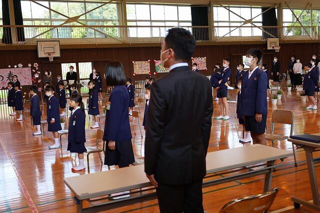 少し大きめの真新しい制服を着て、入学式の会場に入ってきた新入生の様子を見ていると、ワクワクしている表情の子、少し緊張気味の子と様々でした。そんな新入生に、6年生がやさしく寄り添っていました。きっと安心して過ごすことができたと思います。