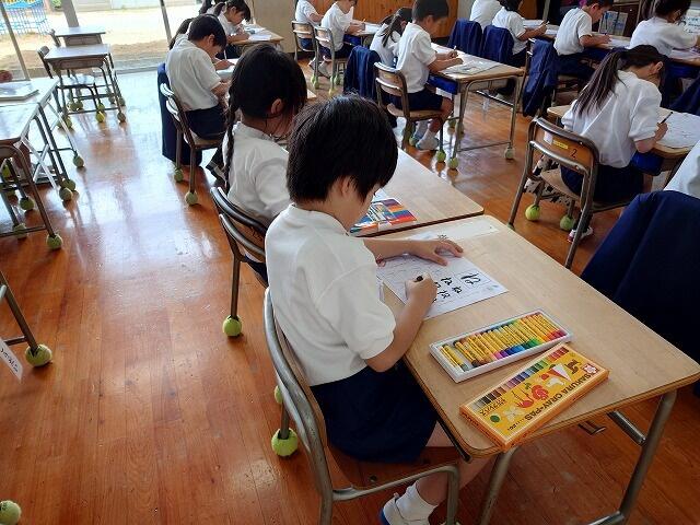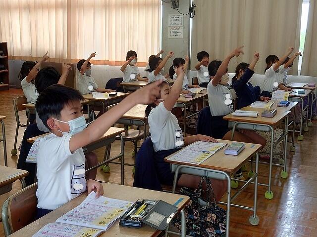 子供たちは熱心に学習に取り組んでいます。1年生では、ひらがなの練習を何度も丁寧に練習していました。3年生では、新出漢字の筆順や部首名を熱心に練習していました。4年生では、算数のグラフの学習をしていました。意欲的に気づきを発表していました。5年生では、体積の学習をしていました。1㎥は何リットルか?何立方センチメートルか?などを式をもとに考えていました。