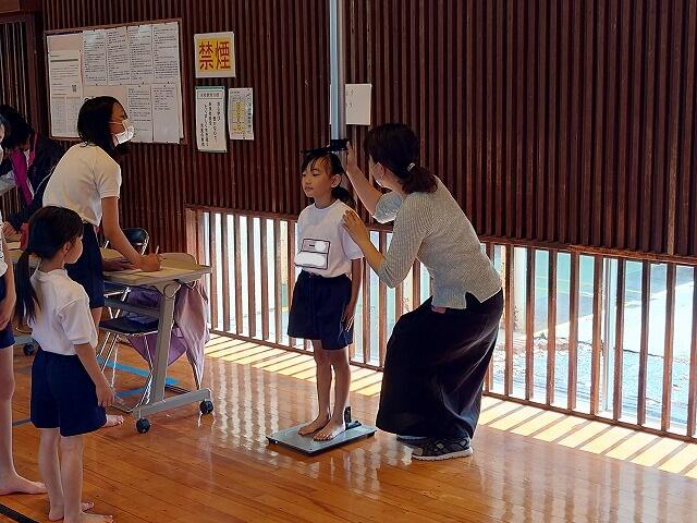 その後は、身長、体重、聴力、視力を測定していきました。みんなそれぞれに昨年度に比べ、身長と体重が成長していました。