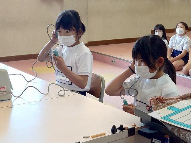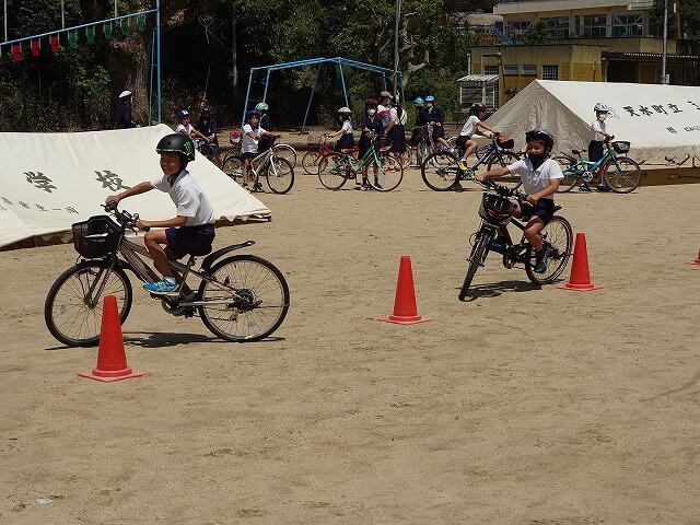 交通教室は、2時間目に1,2年生が道路の横断の仕方や道路の歩き方を練習しました。3時間目には3年生以上が道路における自転車の走行の仕方や安全確認の仕方を練習しました。