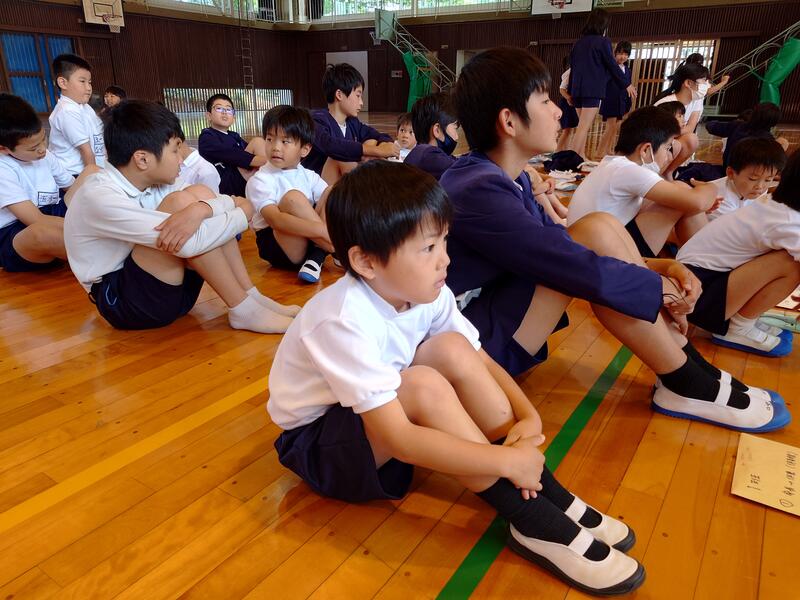はじめに体育館に全児童が集合しての説明がありました。子供たちは、みんな私語をせずに話を聴くことができていました。