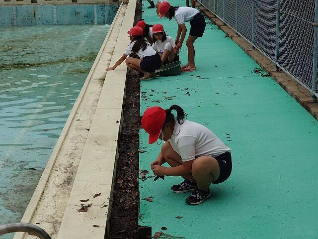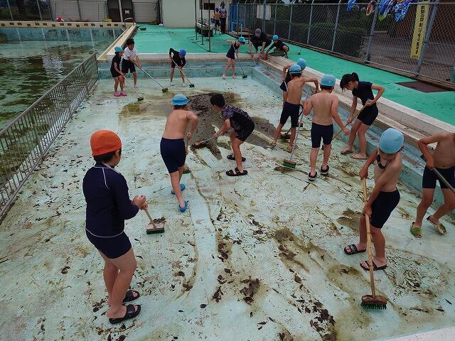 5月31日、プール掃除をしました。学年毎に分担して、水泳の授業を気持ちよくできる環境にしていきました。