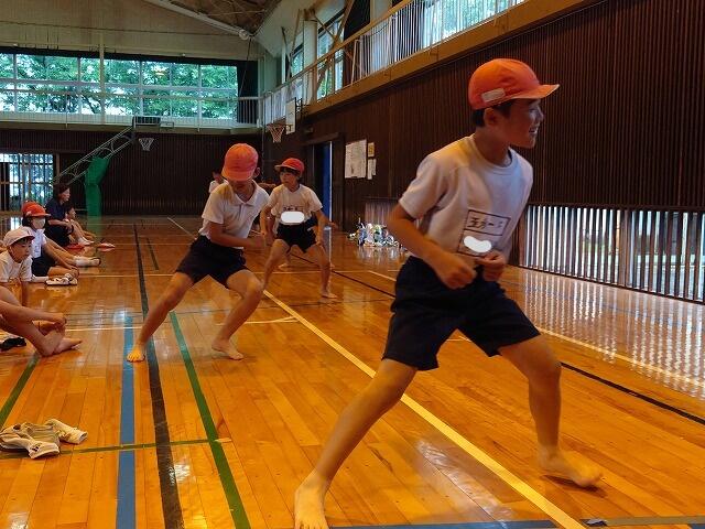 6日は雨天のため、体育館で上体おこしや反復横跳び、立ち幅跳び、長座体前屈を測定しました。