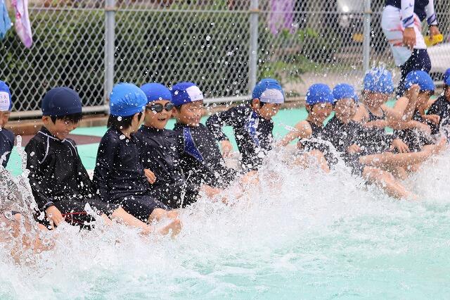 プール開きでは、子供たちは、活動する上での諸注意を聞いた後、準備運動をしっかりしてプールに入りました。