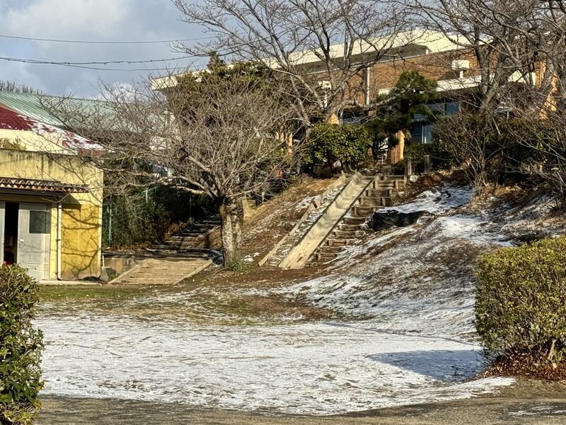 1月24日、昨夜からの雪で運動場は一面真っ白でした。