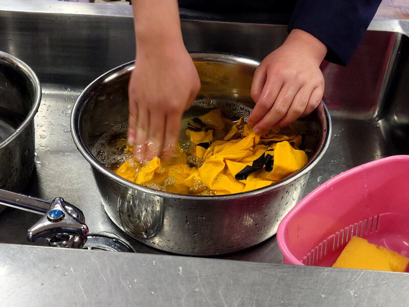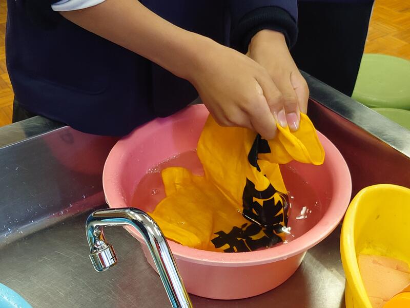 6年生は、旗をやさしく手洗いしたり、竿を交換する準備をていねいに行ったりしていました。さすが6年生という手際のよさでした。
