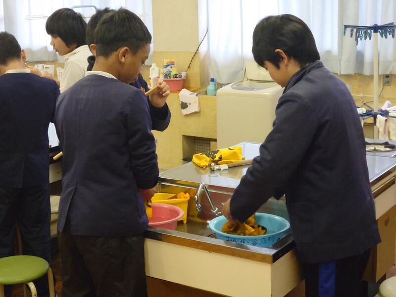 2月5日、6年生が登校旗のお手入れを行いました。