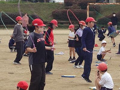 子供たちの中には、体育の授業以外にも休み時間に進んで練習をしている子もいました。校長室から見ていましたが、みんなとても楽しそうになわとびをしていました。