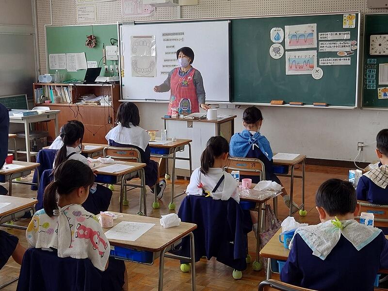 2月20日、市の保健センターの方お二人に来校していただき、3、4年生に歯の健康教室をしていただきました。