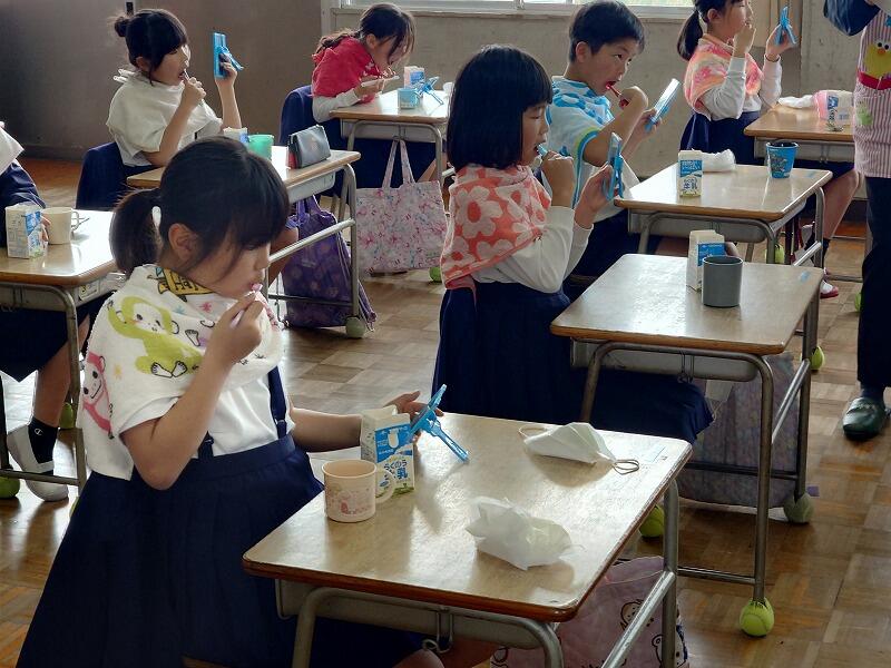 歯磨きの大切さや唾液の働きなどについて話を伺った後に、赤い染料で磨き残しの場所を確認して、歯磨きの練習をしていきました。丁寧に磨いているつもりでも、思っていた以上に赤く染まった箇所があった子もいました。しかし、今回のご指導で、磨き残しを減らすポイントを掴んだようでした。