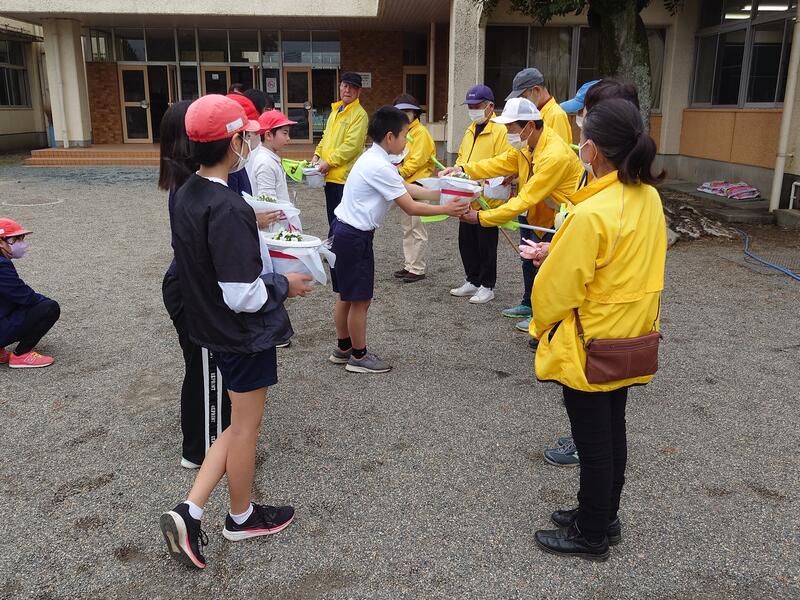 活動の最後には、学校で種から育てたビオラの鉢をお礼として民生委員の皆さんに差し上げました。