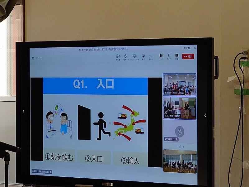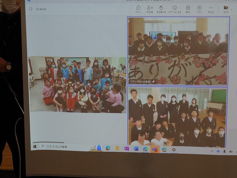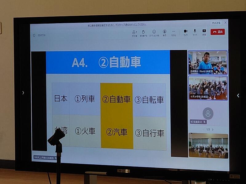 2月27日、高雄市(台湾)の小学校とのインターネットを活用したリモート交流会を行いました。参加したのは、玉水小学校の6年生と小天小学校の6年生、そして高雄市の忠孝小学校の6年生です。