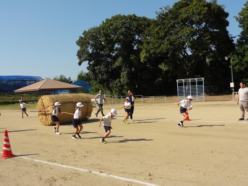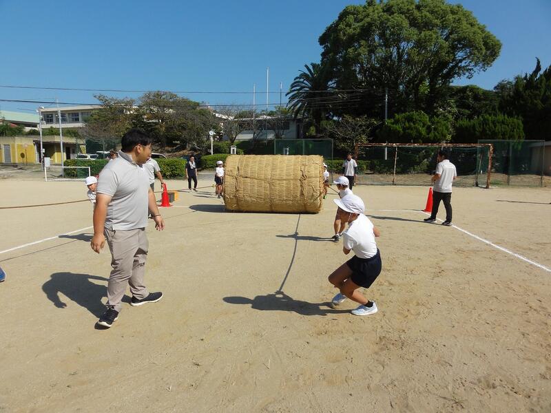 大俵ころがし体験では、2チームに分かれて作戦を練って俵を速く転がすことに挑戦したりしていました。