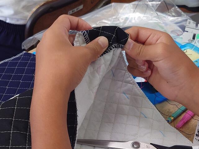 10月7日、6年生が裁縫の学習をしました。制作するのはナップザックです。