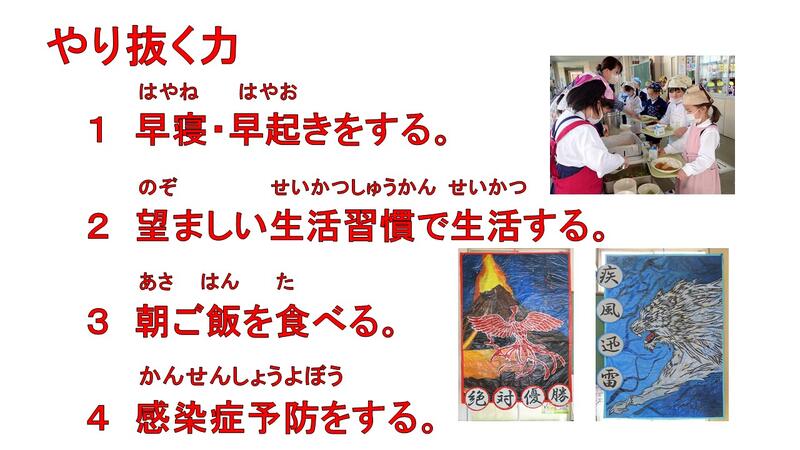 そこで、終業式では子供たちの成長ぶりをこの3つの力に関連付けて話しました。