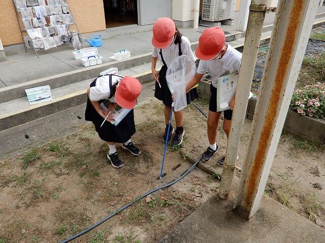 3年生は、理科の授業で生き物の食べ物やすみかの学習をしていました。生活科で虫捕りをたくさんしてきた子供たちです。「あっ、ニホントカゲ!」「カマキリだ!」と生き物を見つけるたびに歓声を上げ、観察していました。