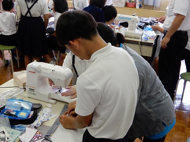 6年生は、家庭科の授業でミシンを使っての裁縫をしていました。7人の地域の方に来ていただき、ミシンの操作やトラブル解決に対応していただきました。本来は、3,4時間目に来ていただく予定でしたが、その時間より早く来てミシンの調整や操作確認をしていただきました。おかげでとてもスムーズに進みました。