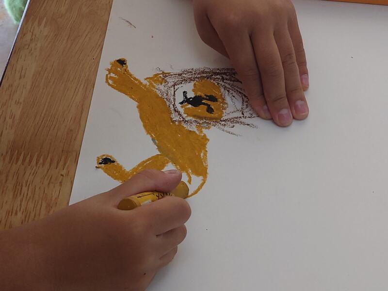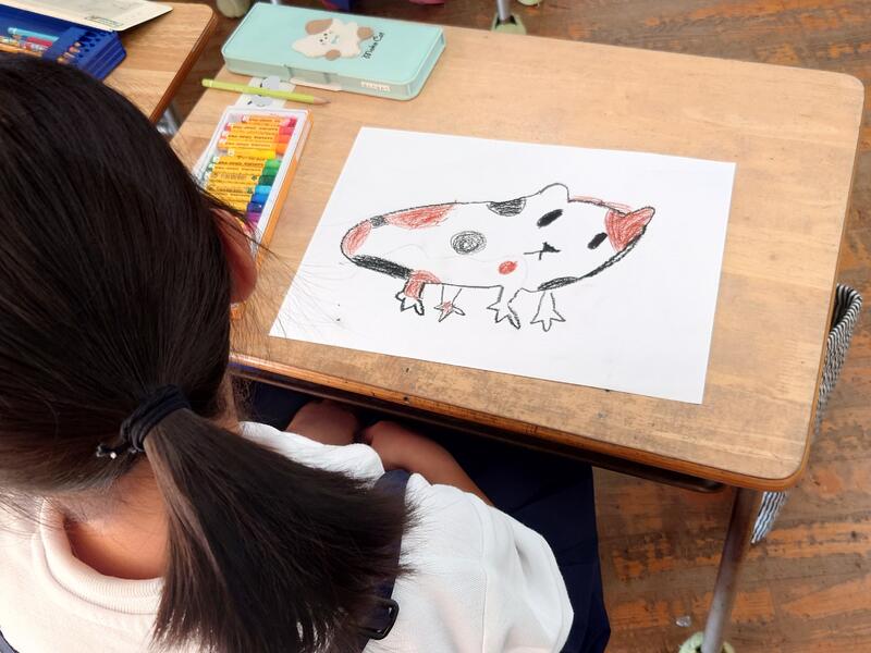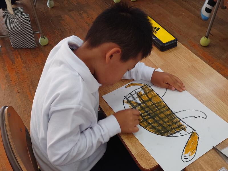 翌日は、見学旅行で見たお気に入りの動物たちの絵を描いていました。