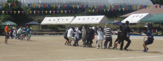 たくさんの協力をいただきました。競技は、「地区対抗綱引き」「親子三代競技」「各部対抗リレー」