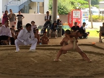 7月28日(金) 8:30~ 天水町の相撲場で、3校親善相撲大会が行われました。みんな全力を出してがんばりました。最後の一枚は、荒平君が優勝を決めた一番です。