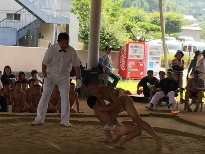 7月28日(金) 8:30~ 天水町の相撲場で、3校親善相撲大会が行われました。みんな全力を出してがんばりました。最後の一枚は、荒平君が優勝を決めた一番です。