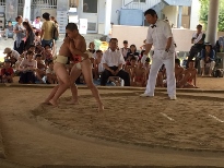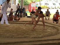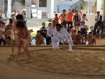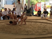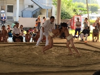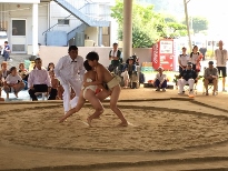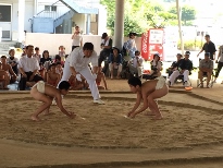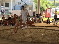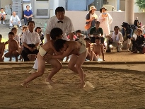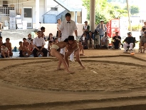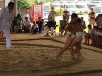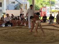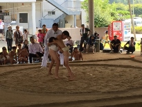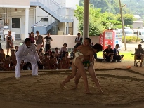 7月28日(金) 8:30~ 天水町の相撲場で、3校親善相撲大会が行われました。みんな全力を出してがんばりました。最後の一枚は、荒平君が優勝を決めた一番です。