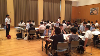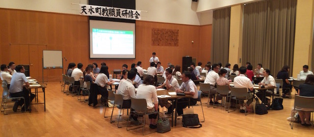 8月17日(木)午後、天水中校区の小中一貫教育の合同研修会が開かれました。「ふるさと天水町にほこりを持ち、たくましく生き抜く力を育てよう」というスローガンをもとに児童生徒の姿をワークショップで出し合いました。そして、出し合った姿をもとに、知・徳・体部会で、中学3年生時、中学1年生時、小学4年生時はどのようなことができるようになっていたらよいかを考えました。天水町の保育園、小学校、中学校の職員が意見を交換し、協議ができたことは意味があることだと思います。この研修も天水地域のものなので、ここで紹介させていただきました。下の写真は、その時の様子です。