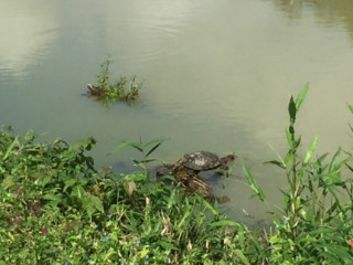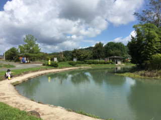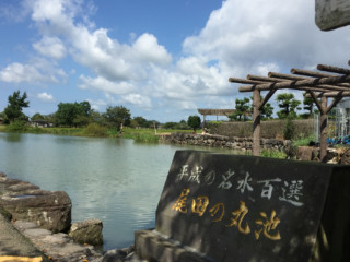 9月18日(月) 10時 台風一過の「尾田の丸池」に出かけました。いつもに比べると水が多く、濁りもありましたが、水をくみに来られている方や何組かの家族づれの方が散歩をして過ごされていました。水の中には亀やフナ、鯉、アメンボなど生き物がたくさんいました。白鷺2羽と灰色の鶴のような鳥を1羽も見ることができました。尾田の丸池は、熊本県名水百選にも選ばれています。