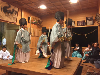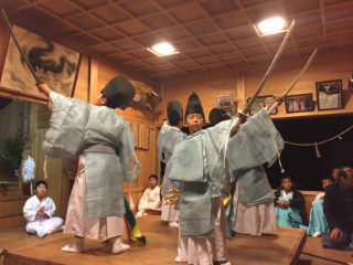 10月15日(日) 6時~ 今日は、立花神楽に行ってきました。120年以上も続く伝統ある地域の行事です。今日は残念ながら雨のため、56年生による御神楽の踊りは中止になりましたが、立花神楽は、小学生から高校生までの子どもたちによって11座が演じられました。以前は33座あり、夜遅くまで演じられていたそうです。小学1年生の神楽に地域の方からかわいいという声が上がっていました。地域の中で重要な役割を演じている小学生にたくましさを感じました。写真は区長さんに許可をいただいて掲載しています。