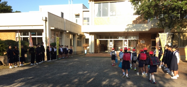 10月27日(金) 今日は、天水中との「合同あいさつ運動」の最終日でした。北坂下では、尾田の子ども達があいさつ運動に取り組んでくれました。あいさつ運動に来てくれた中学生の皆さんありがとうございました。指導してくださった先生方にも感謝です。