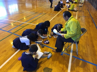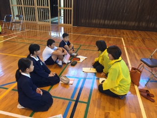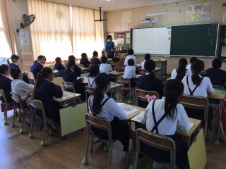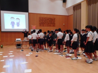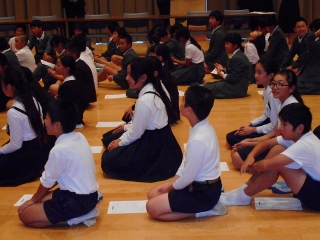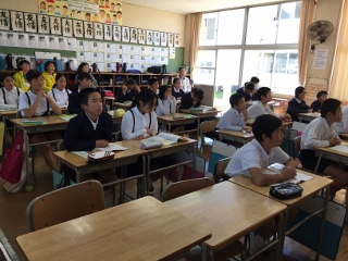 10月26日(木) 14:00~天水中学校の体験入学がありました。今年度が初の試みです。まず、学校概要の説明があり、次に英語と音楽の授業を体験しました。そして、生徒会執行部が学校紹介をし、最後に6人組のグループに中学生が一人ずつ入り、小学生からの質問に答えてくれました。とても盛り上がったそうです。子ども達も天水中学校のことがよく分かったと思います。