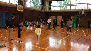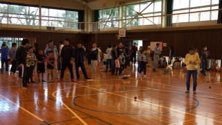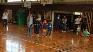 10月29日(日) 玉水祭りが開催されました。雨の影響から体育館での開催となりました。最初地域のゴミ拾いをしながら集まる予定でしたが、変更になりました。まず、神楽を子ども達が踊った後、ペタンクが行われました。その後、バーベキューが予定されています。大勢の方が参加され、地域のつながりを感じました。写真は、ペタンクの様子です。