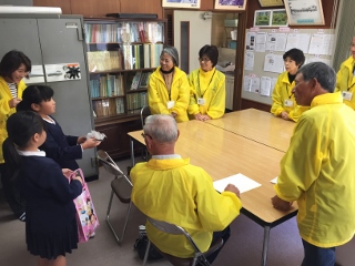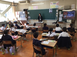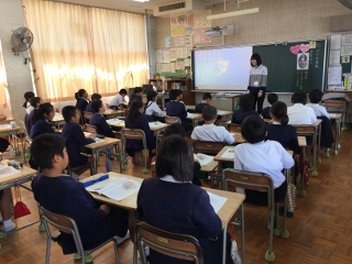 10月31日(火) 4校時 34年生が民生員・児童員さん方との交流を行いました。民生児童員さん7名【徳永さん、米野さん、大保さん、畑岡さん、小川さん、西村さん、塚本さん】と主任児童員さん2名【鶴窪さん、石川さん】の方の参加がありました。まず、3年生が、国語「伝えよう楽しい学校生活」の発表をしました。次に34年生が音楽会の発表曲の演奏をしました。最後に4年生が、玉名学「生き生きとくらせる福祉のまち玉名」の学習で民生員・児童員さん方に質問をして仕事への思いや内容などを学びました。3年生からは、ハローウィンにあわせたプレゼントとジャンボひまわりの種を贈りました。学習のゴールとして、地域の方との交流ができたことは良い機会となりました。