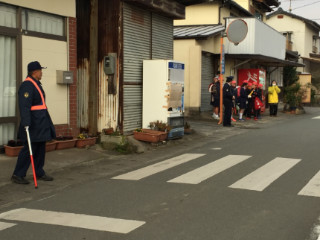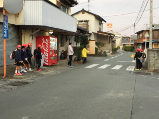 12月20日(水)の北坂登り口の様子です。あいさつ運動期間中で、北坂と児童玄関前で子ども達によるあいさつ運動が行われました。この日は、20日なので、天水駐在所の山下さん、交通指導員の平川さん、民生委員児童委員の西村さんも一緒に交通指導をしていただきました。大変ありがとうございました。