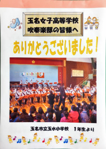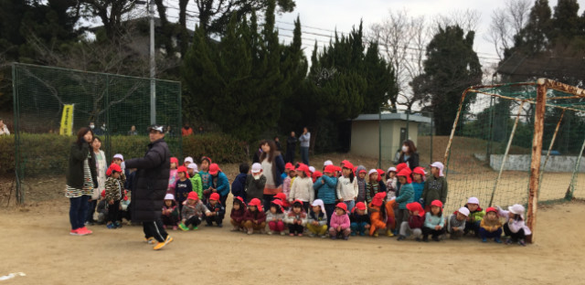 12月19日(火)に持久走大会を開催しました。以前お伝えしましたが、今日は、そのとき応援に来てくれた玉水保育園の園児を紹介します。例年応援に来たいただいているそうですが、玉水小の子ども達もかわいい応援で元気をもらいました。ありがとうございました。1枚は、12月21日学校に遊びに来ていた玉水保育園のふじ組さんです。写真は、保育士さんの許可をいただいて掲載しました。