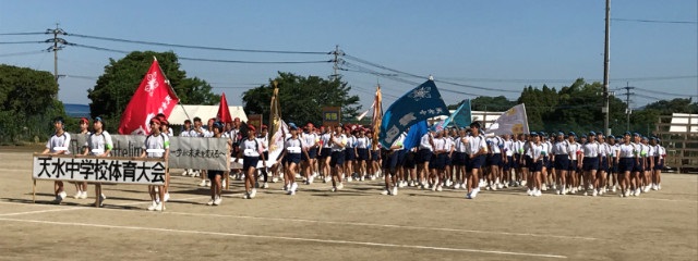 5月20日(日) 今日は天水中学校の運動会でした。「The sky is the limit ~君の一歩が未来を変える~」のスローガンのもと真剣に臨んでいる中学生を見ることができました。卒業生もみんなとても頑張っていました。元気な姿を見れてうれしくなりました。