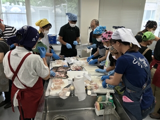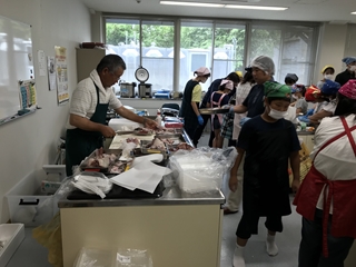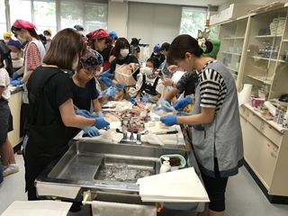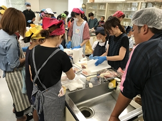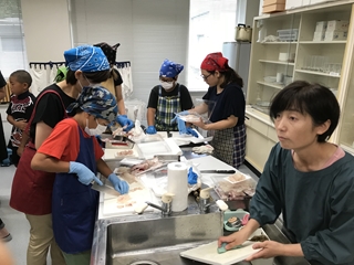 7月7日(土) 今日は、5年生の学年活動でした。会場は、横島町の保健センターで行われました。講師に熊本県海水養殖漁業協同組合の方においで頂き、ブリやタイのさばき方の実演の後、家族に1っぴきずつ配られたタイの調理に挑戦していました。みんな上手にできていたようです。すばらしい経験になったと思います。