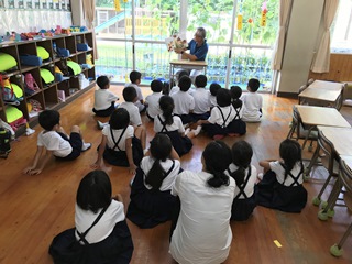 7月19日(木) 今日は、子供達が楽しみにしている読み聞かせの日でした。エアコンの入った快適な部屋での読み聞かせは、一段と集中できそうです。いつも読み聞かせへのご協力大変ありがとうございます。