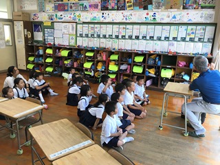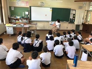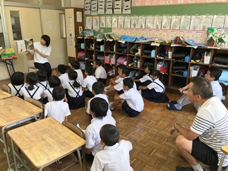 7月12日(木) 今日は読み聞かせがありました。気温は朝から暑くなっていますが、エアコンの入った涼しい教室で、読み聞かせも快適です。
