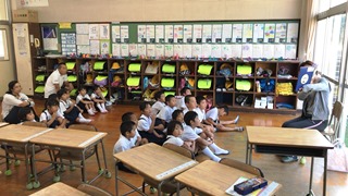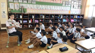 7月19日(木) 今日は、子供達が楽しみにしている読み聞かせの日でした。エアコンの入った快適な部屋での読み聞かせは、一段と集中できそうです。いつも読み聞かせへのご協力大変ありがとうございます。