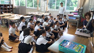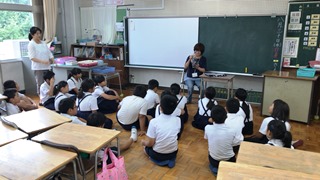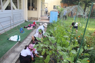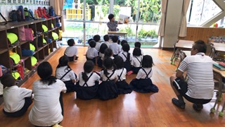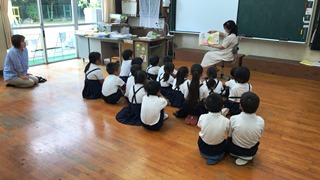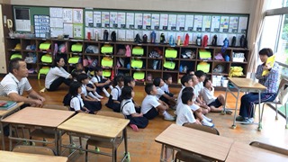 8月30日(木) 今日は、読み聞かせがありました。本の内容に合わせて、本物のナスを持ってきていただきました。子供達も興味を持って聞いていました。