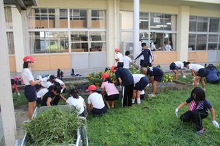 8月18日(土) 今日はPTAのびか作業がありました。いつものことながら保護者の皆様の頑張りでとてもきれいになりました。大変おありがとうございました。子供達も頑張りました。運動場の草刈りの写真が撮れませんでした。