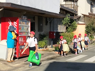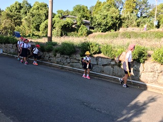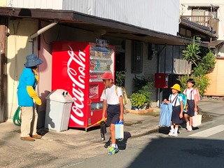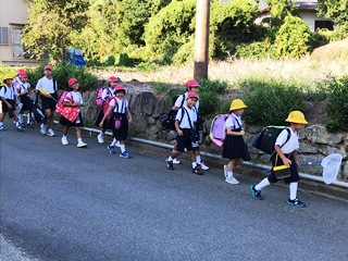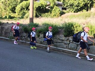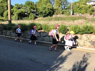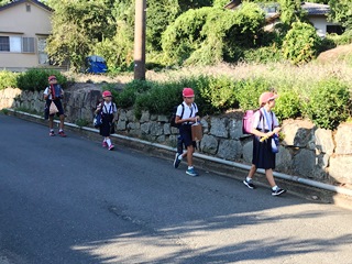 8月27日(月)の北坂下の登校の様子です。朝晩が少し過ごしやすくなったとはいえ、まだまだ暑いです。額に汗を光らせて頑張って登校していました。