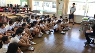 9月20日(木) 社会科「事故や事件からくらしを守る」で、天水駐在所の山下さんをゲストティーチャーに授業を実施しました。警察官の仕事や警察学校での経験、県警本部との通報の体験まで盛りだくさんの内容でした。キャリア教育にもつながるものでした。