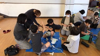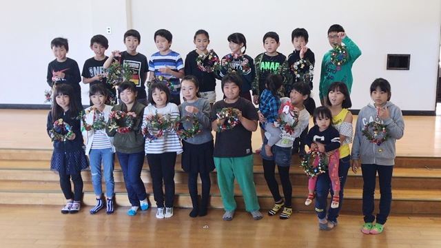 11月3日(土) 今日は、4年生がPTA活動でクリスマスに飾るリース作りを行いました。菊池少年自然の家の稲田さんが指導してくださいました。みんな真剣な表情で、一人一人が個性的なリースを作っていました。