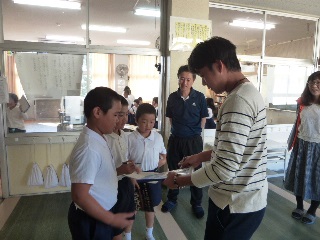 11月5日(月) オリックスに入団された荒西投手が、子供達を激励に玉水小学校においでになりました。子供達へ夢を持って努力することの大切さを伝えていただきました。玉水小では、ソフトバンクのファンが多いのですが、これからは、地元出身の荒西投手をしっかり応援してくれると思います。訪問ありがとうございました。サインを学校としていただきましたので、玄関に飾っておきます。来校の際は、是非ご覧ください。