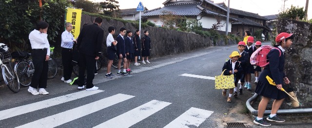 11月9日(金) あいさつ運動の2日目です。今年度は、天水中学校の2年生が来てくれました。大変ありがとうございました。