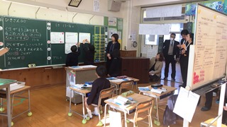 11月19日(月) 天水町小中一貫教育授業実践交流会がありました。今年度は、小天東小学校が会場です。小天東小学校では、ガイド学習が行われており、子供達が主体となって学習が進められていました。玉水小学校で取り組んでいる授業方法とも方向性が同じなので、とても参考になりました。4つの学校が一堂に集まりお互いに授業を見合い共通実践事項を確認することができました。写真は、授業の様子と研修会後の報告会の様子です。